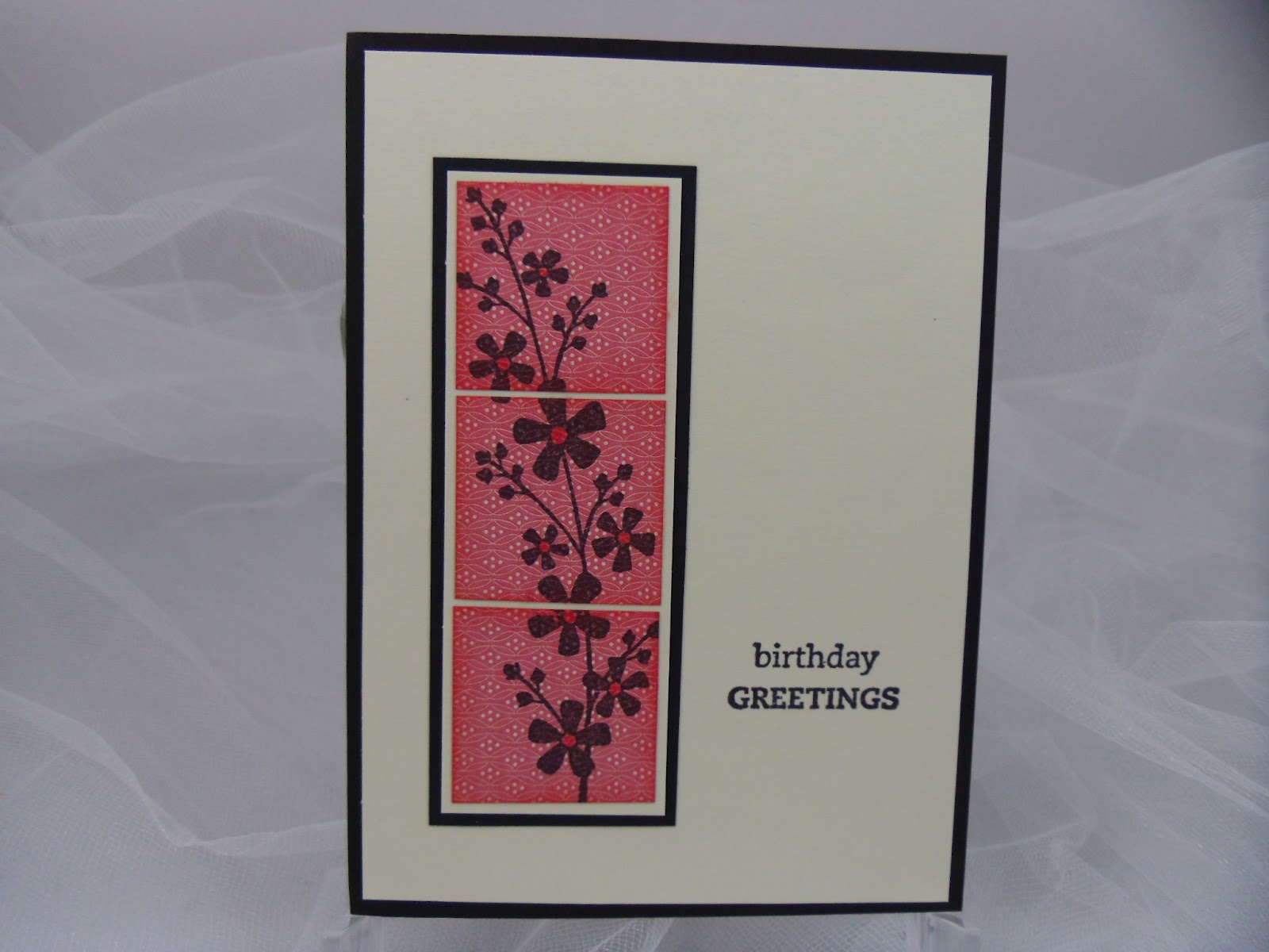 HAPPY TUESDAY ALL! Just a quick post with a few more birthday card ideas....again..CAS...again, from the book of birthday wishes I made for my SIL's 50th birthday. If this is the first in the series of CAS cards you have come upon, please scroll down....there are multiple earlier posts with other cards from her book. Here are some more.